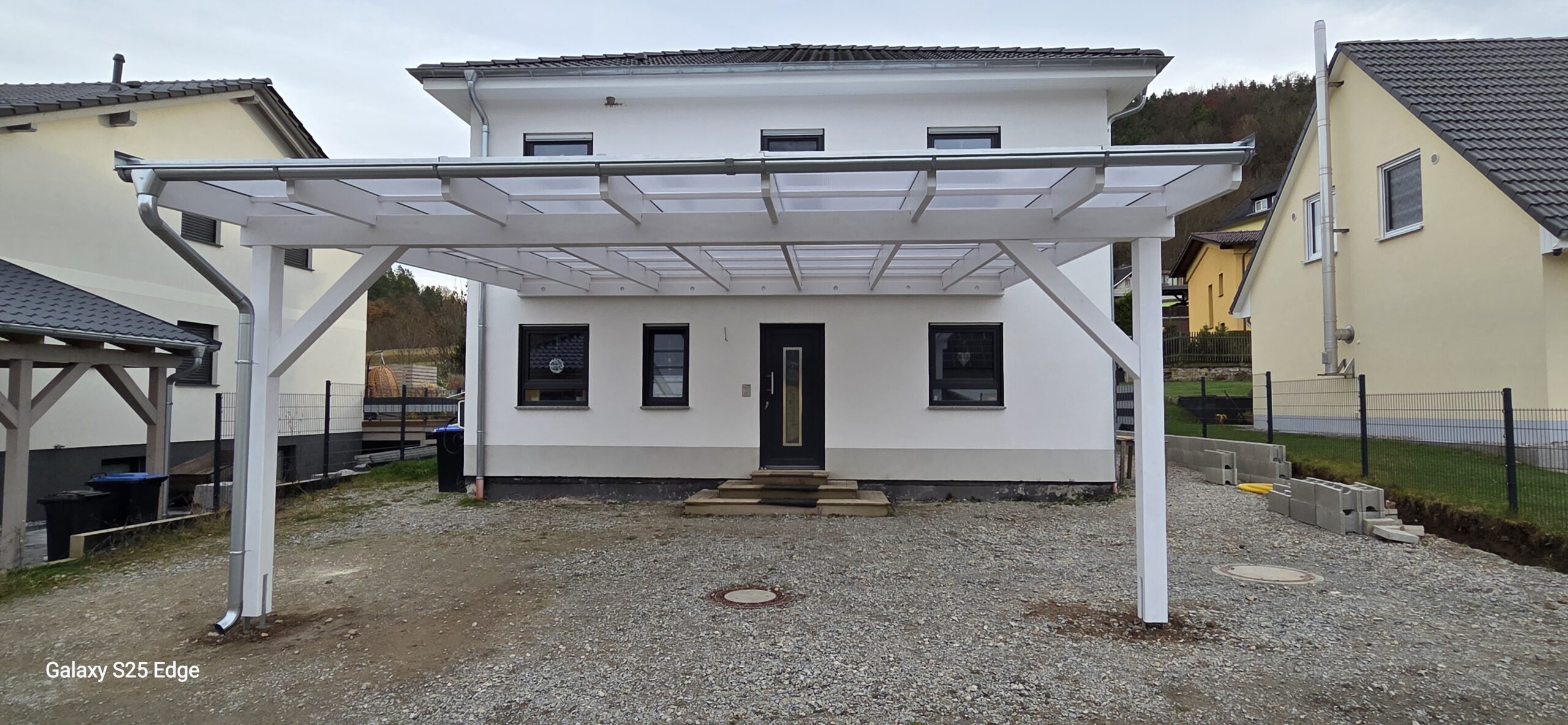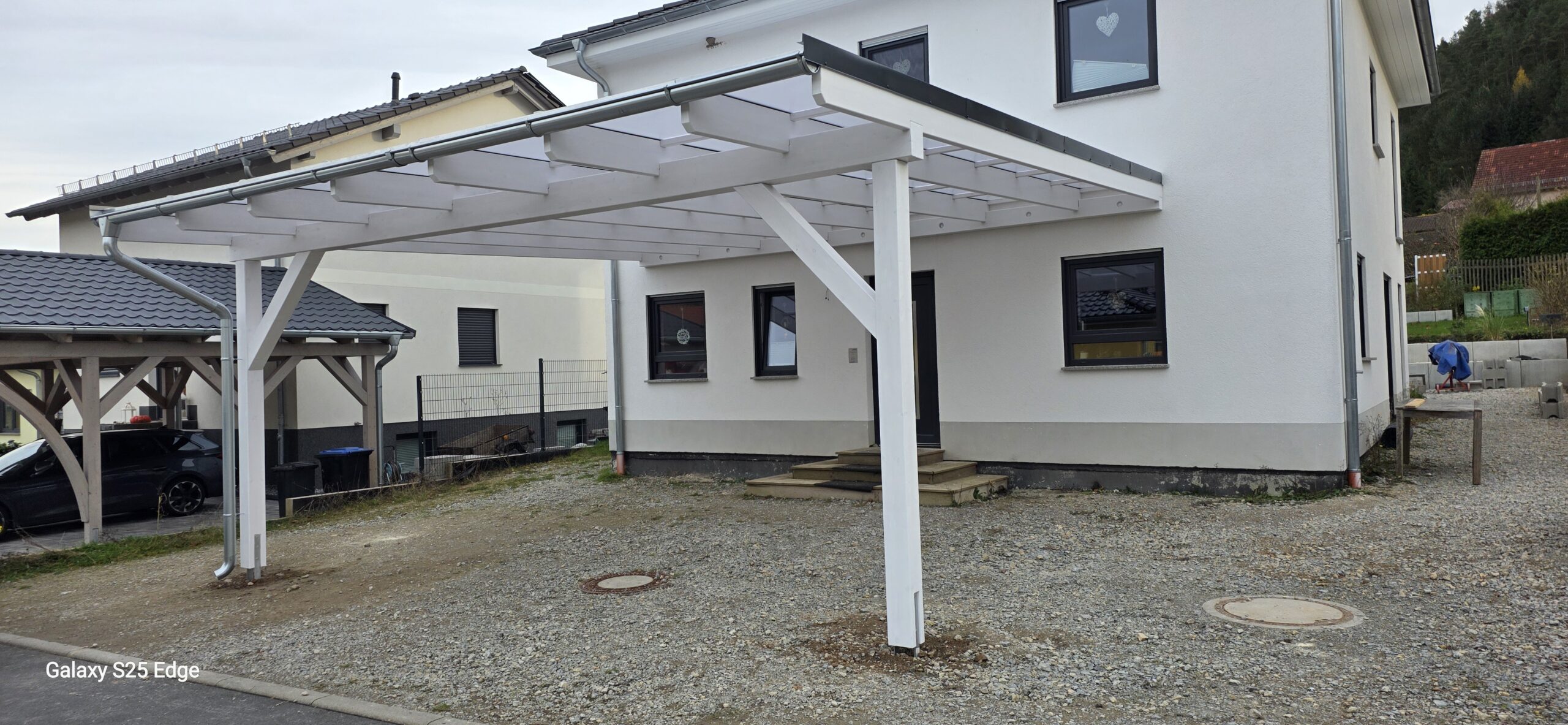 Terrassenüberdachung in Weiß mit Entwässerungssystem